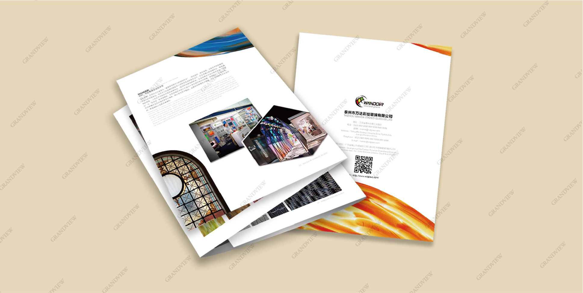 廣角為萬(wàn)達(dá)萬(wàn)達(dá)彩繪玻璃設(shè)計(jì)的折頁(yè)流光溢彩、絢麗燦爛,將“最具視覺(jué)吸引力結(jié)構(gòu)藝術(shù)”的孤傲彩繪玻璃展品融入現(xiàn)實(shí)生活,賦予生活個(gè)性,賦予產(chǎn)品活力。折頁(yè)采用大紅、明黃、深綠等厚重的色彩設(shè)計(jì),集藝術(shù)性和實(shí)用性于一體,充分展示了彩繪玻璃的獨(dú)特風(fēng)格,將彩色玻璃藝術(shù)設(shè)計(jì)文化與人類(lèi)生活空間交織相融,使其更具魅力。
